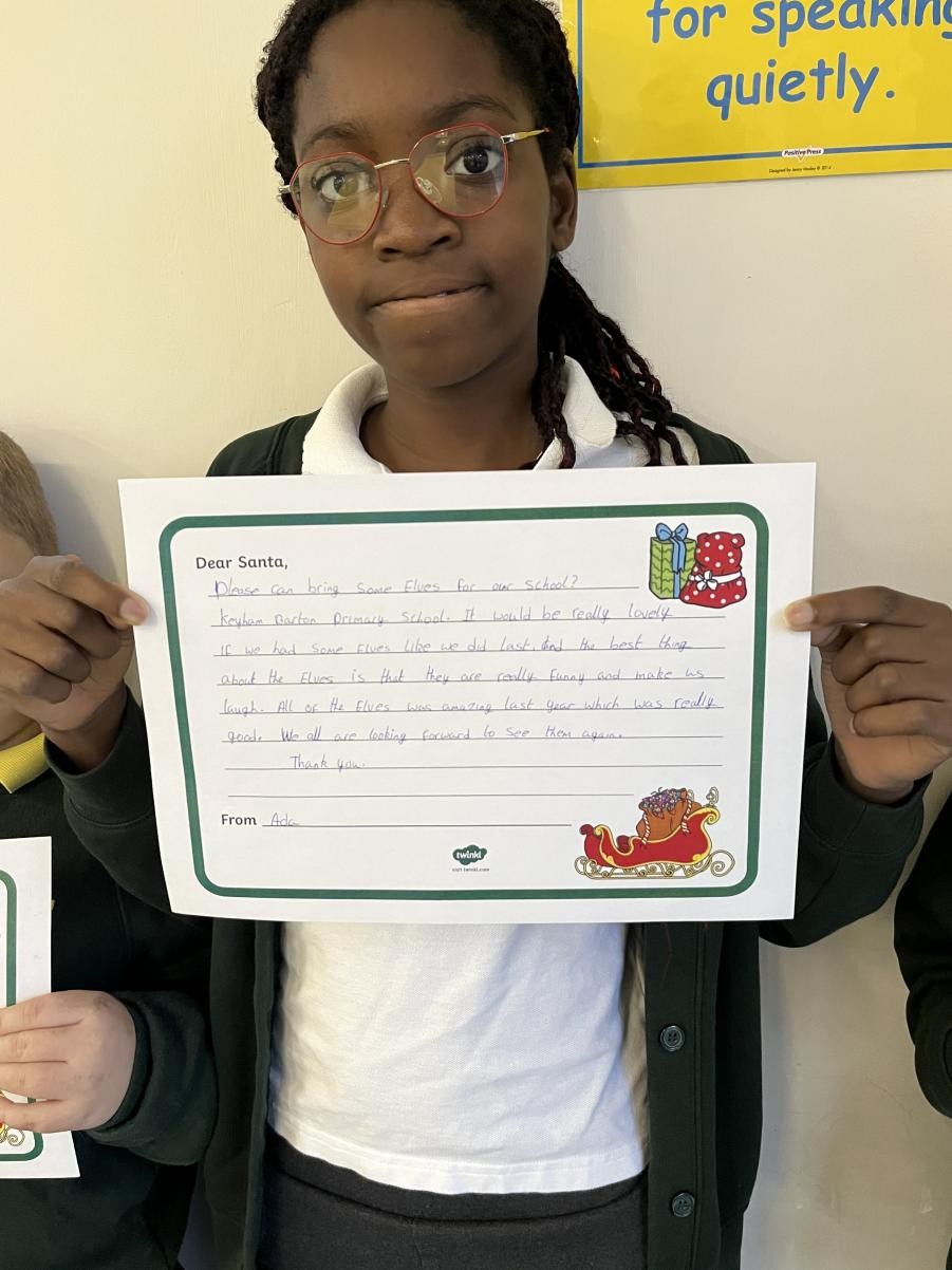 Breakfast Club children have written to Santa asking if the Elves can return to our school. What wonderful writing by our children, we are super proud of you. Let's hope our wishes will come true!
